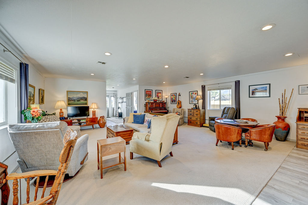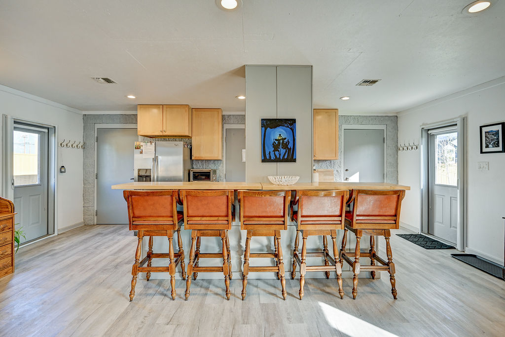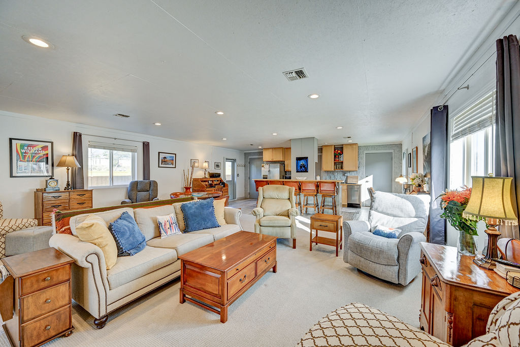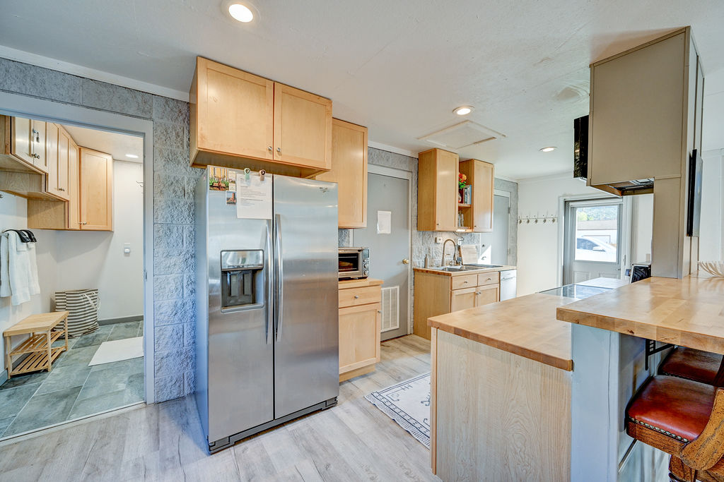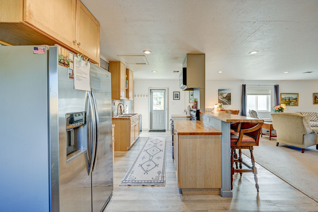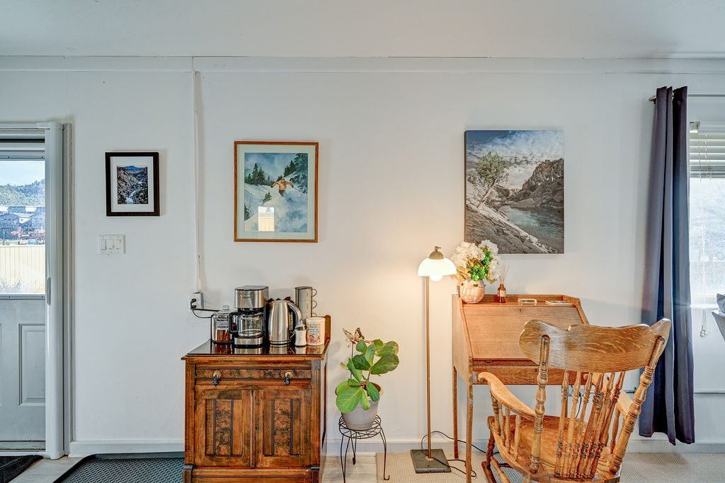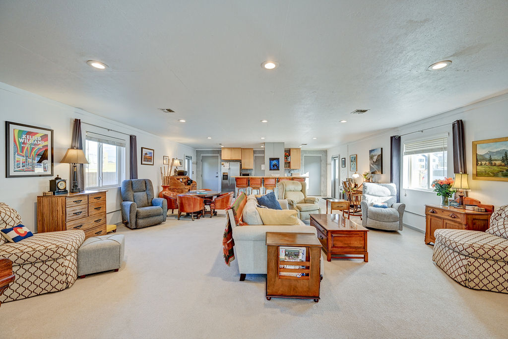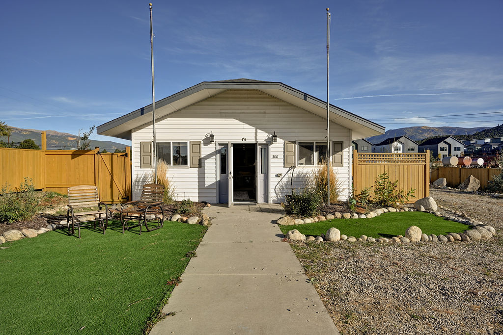 Memorial Hall was converted from the local American Legion to our home in Buena Vista. The space has 2 bedrooms with queen size beds, 1 full bathroom with a stand up shower and a half bath with a washer and dryer. Both bathrooms feature Toto electric toilets. The kitchen includes a microwave, toaster oven, refrigerator with ice maker and water dispenser, dishwasher, and a drip coffee maker with gourmet coffee. The living area has a smart tv, ample seating and a desk.